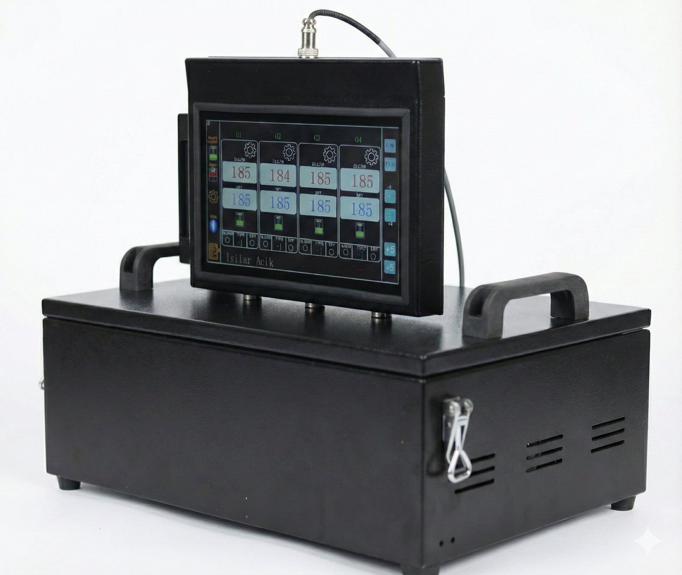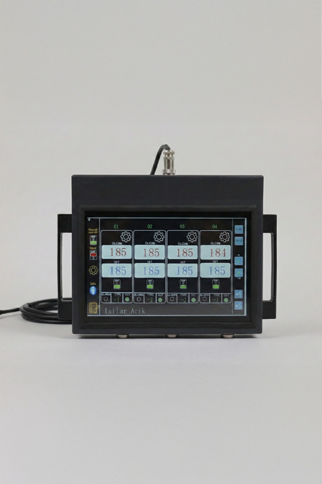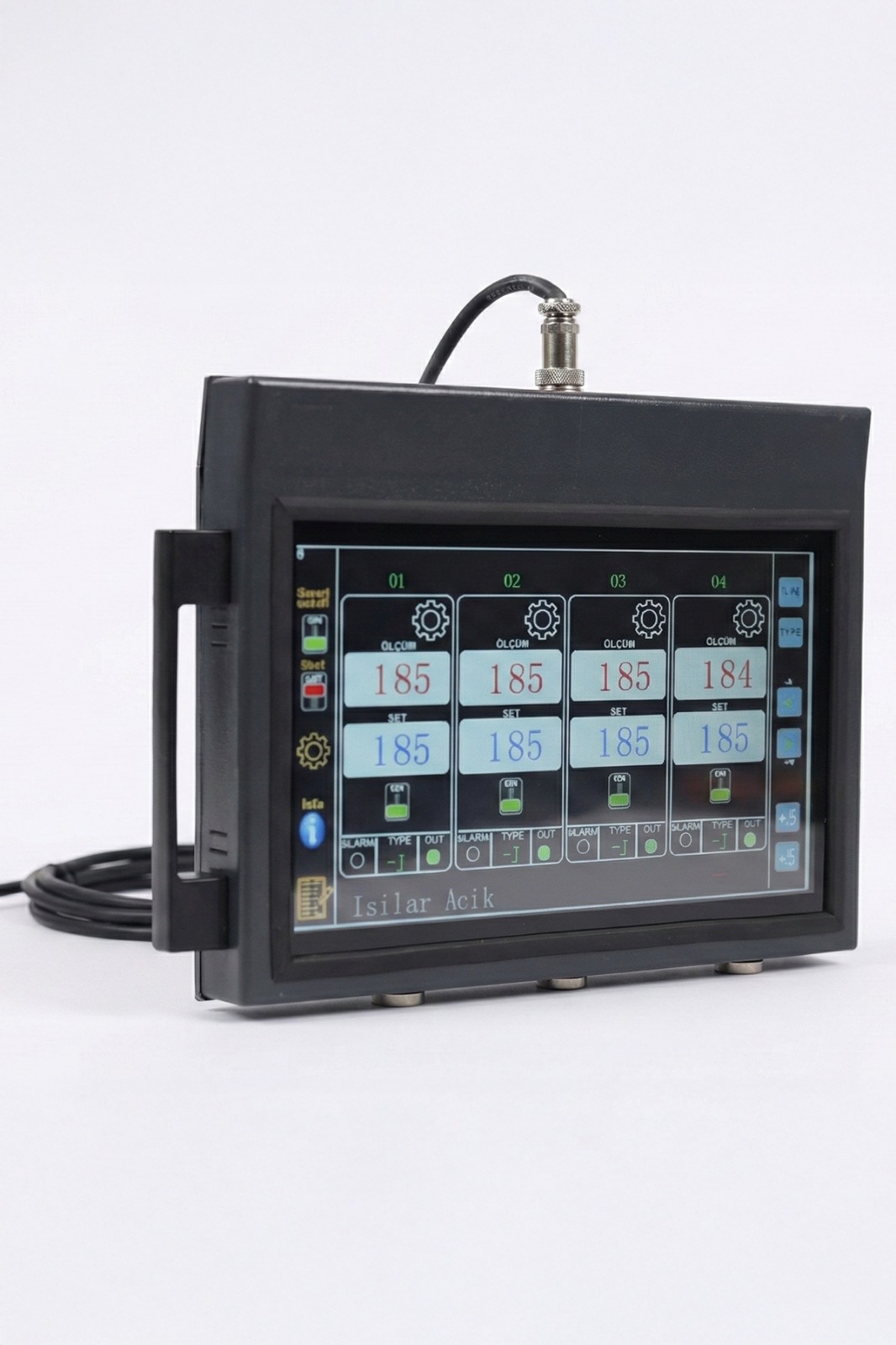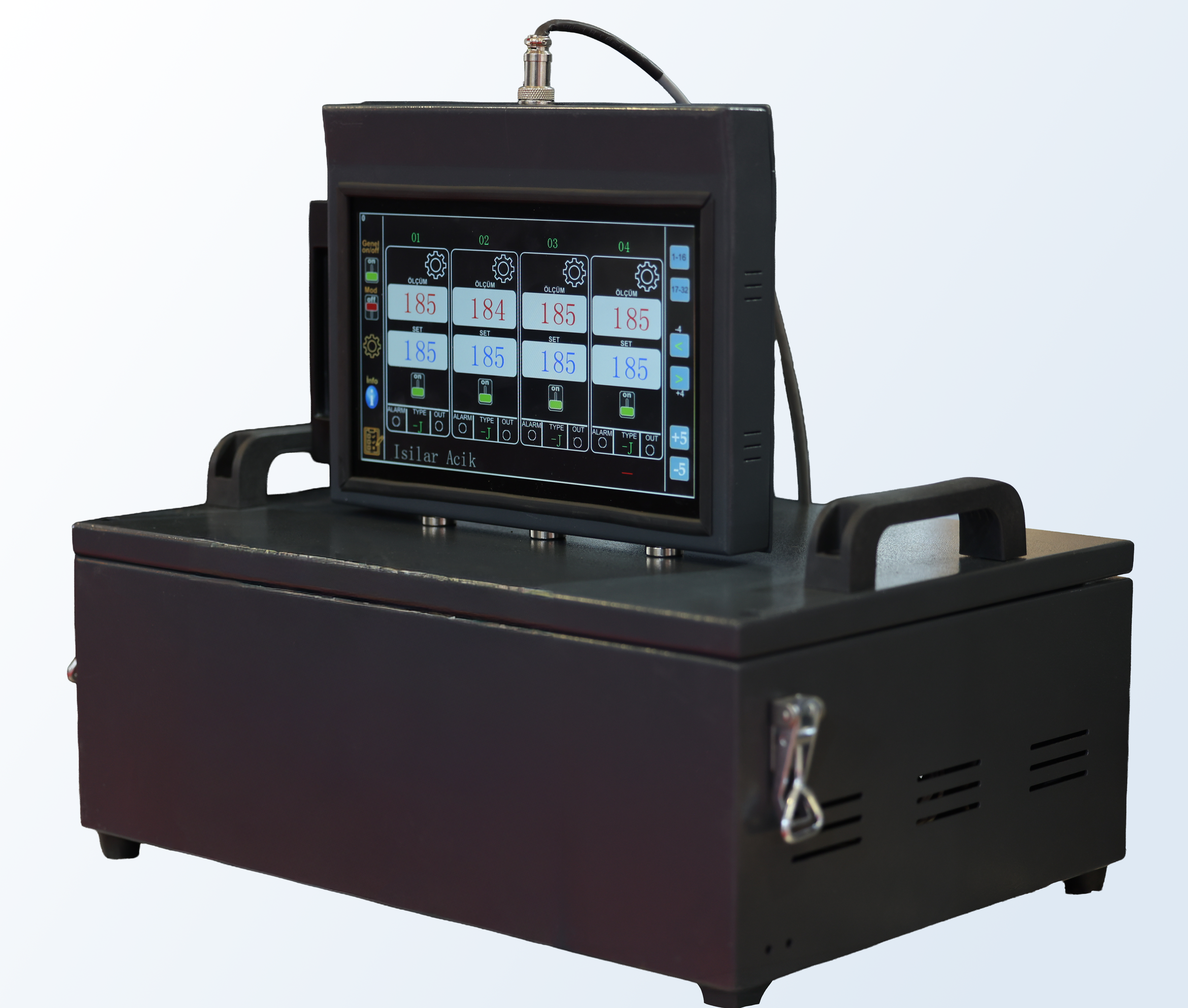 Plastik enjeksiyon sektörüne özel olarak yeni üretimimiz olan dokunmatik panel yönetimindeki Sıcak Yolluk Kontrol Ünitemiz.